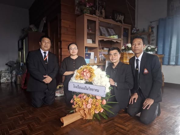 On October 6, 2025, Ms. Somjit Takamsaeng, Director of Mae Rim Witthayakhom School, assigned Mr. Krisana Chankhao, along with the deputy directors of Mae Rim Witthayakhom School, to lay a wreath and express their condolences on the passing of Mr. Saming Thajittham, the father of Ms. Nareerat Thajittham, Director of Mae On Witthayalai School, at Luang Nuea Subdistrict, Doi Saket District, Chiang Mai Province.