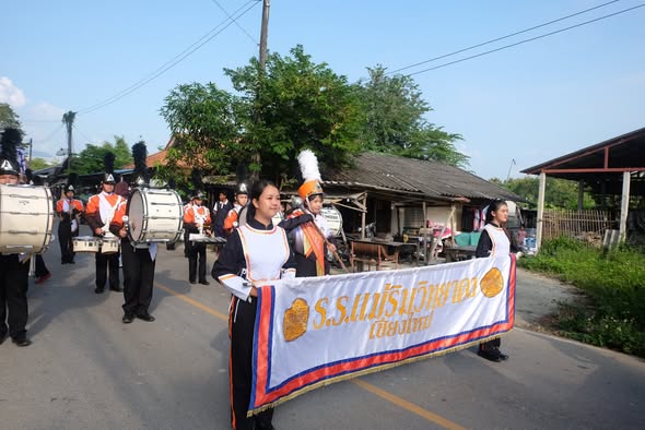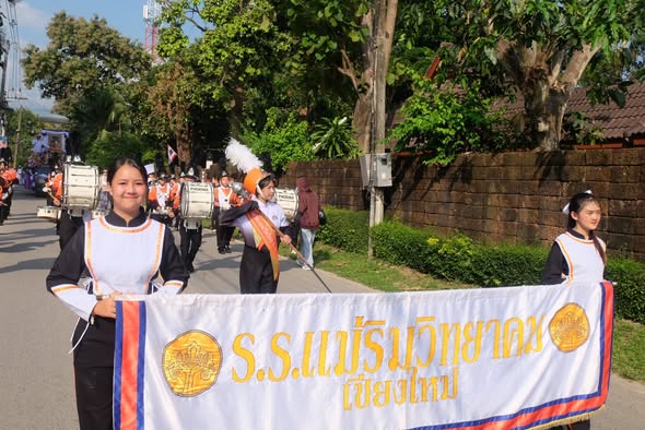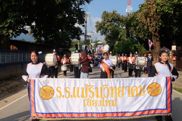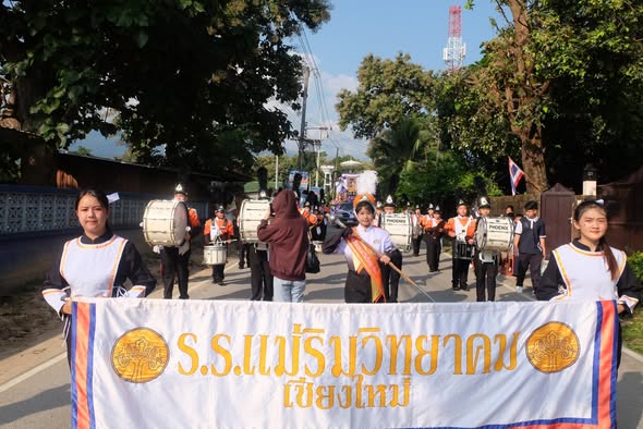 On October 12, 2025, Ms. Somjit Takamsaeng, Director of Mae Rim Wittayakom School, assigned the Arts Learning Area Department to lead students from Matthayom 1–6 (Special Program in Western Music, Arts–Western Music Program, and the School Marching Band Club) to perform with the school marching band at the Royal Kathina Robe Offering Ceremony at Wat Don Kaew.