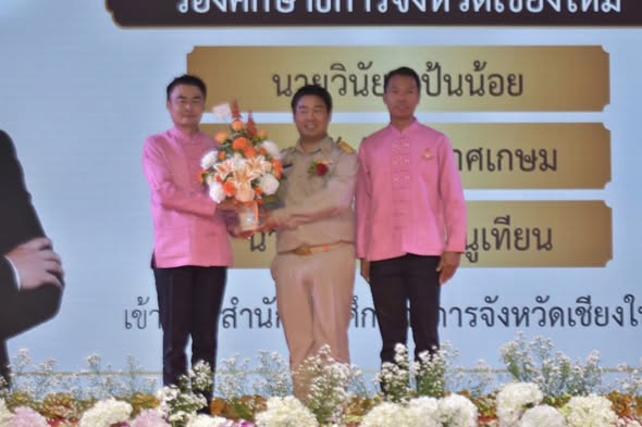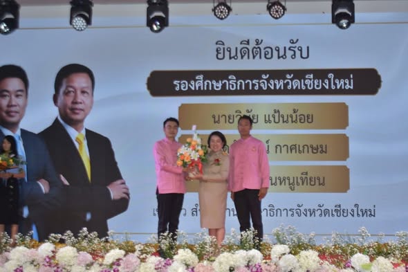 On October 14, 2025, Ms.Somjit Takamsaeng, Director of Mae Rim Wittayakom School, assigned the deputy directors of the school to attend the welcoming and congratulatory ceremony for Mr. Winai Paennoy, Mr. Danairat Kasakesem, and Ms. Hasaya Phannuthian on their appointments as Deputy Chiang Mai Provincial Education Officers. The ceremony was held at Americana Chinese International School, Saraphi, Chiang Mai