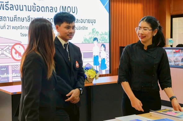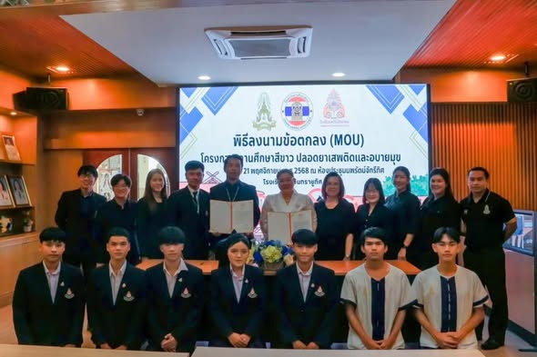 On 21 November 2025, Ms. Somjit Takamsaeng, Director of Mae Rim Witthayakhom School, assigned Mr. Chingyut Mulaek, Deputy Director of Mae Rim Witthayakhom School, together with the teachers in charge of the White School Project: Drug- and Vice-Free Institution, to lead student leaders from the White Classroom Committee in engaging in knowledge-sharing activities with network schools. The Mobile Learning Center of the White School Project at Mae Rim Witthayakhom School also participated and conducted a Memorandum of Understanding (MOU) signing ceremony for the White School Project: Drug- and Vice-Free Institution between Mae Rim Witthayakhom School and Mae Taeng School, Nawamintharachinuthit Payap School, and Hor Phra School.