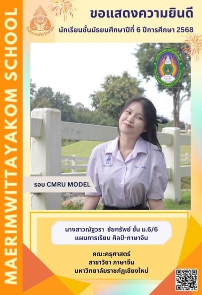 āļāļāđāļŠāļāļāļāļ§āļēāļĄāļĒāļīāļāļāļĩāļāļąāļāļāļąāļāđāļĢāļĩāļĒāļāļĢāļ°āļāļąāļāļāļąāđāļāļĄāļąāļāļĒāļĄāļĻāļķāļāļĐāļēāļāļĩāļāļĩāđ 6 āļāļĩāļāļēāļĢāļĻāļķāļāļĐāļē 2568 āļāļĩāđāļāđāļēāļāļāļēāļĢāļāļąāļāđāļĨāļ·āļāļāđāļĨāļ°āļĄāļĩāļŠāļīāļāļāļīāđāđāļāđāļēāļĻāļķāļāļĐāļēāļāđāļāđāļāļĢāļ°āļāļąāļāļāļļāļāļĄāļĻāļķāļāļĐāļē āļĄāļŦāļēāļ§āļīāļāļĒāļēāļĨāļąāļĒāļĢāļēāļāļ āļąāļāđāļāļĩāļĒāļāđāļŦāļĄāđ āļāļāļ°āļāļĢāļļāļĻāļēāļŠāļāļĢāđ āļāļĩāļāļēāļĢāļĻāļķāļāļĐāļē 2569 āļĢāļāļ CMRU MODEL āļāļģāļāļ§āļ 9 āļāļ ![]()