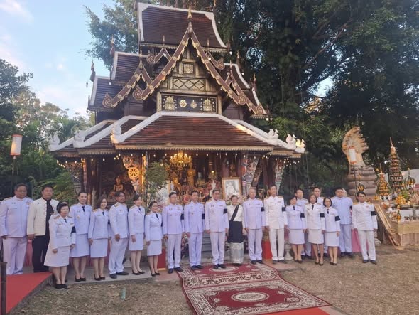 On December 9, 2025, Ms.Somjit Takamsaeng, Director of Mae Rim Wittayakom School, assigned the Deputy Director of the school to participate in the ceremony of receiving the Royal Monk’s Robe and presenting floral offerings in homage to the statue of His Majesty King Chulalongkorn (Rama V), as well as offering tributes to the statue of Princess Dara Rasmi, at Wat Pa Dara Phirom.