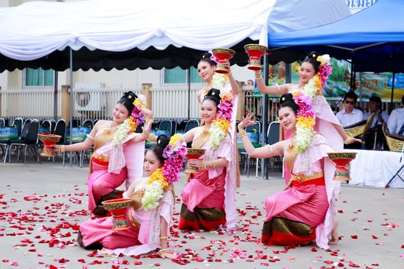 On December 9, 2025, Ms. Somjit Takamsaeng, Director of Mae Rim Wittayakhom School, assigned the Art Learning Area and the Center for Performing Arts, Music, and Visual Arts Development to lead students from the “Natyadara Rasmi” Dance Club and the Thai Music Club to perform at the Ceremony of Worship for the Mae Rim City Pillar Shrine in Chiang Mai Province. The event aimed to provide students with opportunities to showcase their talents and develop their cultural and artistic skills through real performance experiences in an important community ceremony, as well as to preserve, continue, and promote local cultural heritage in Thai dance and music. The ceremony was held at the Mae Rim District Office, Chiang Mai Province.