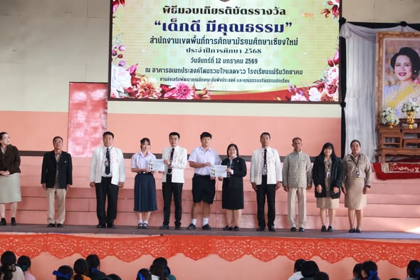 Between January 12–21, 2026, Ms. Somjit Takhamseang, Director of Maerim Wittayakom School, assigned Mr. Kritsana Chankhao, Deputy Director of the School, to preside over the certificate presentation ceremony to congratulate and honor students from Grades 7–12 who participated in various academic, skills, and talent competitions and activities, bringing recognition and pride to the school.The ceremony aimed to provide encouragement and motivation for students to continuously develop their potential.