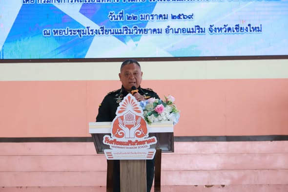 นที่ 22 มกราคม 2569 22 มกราคม 2569 นางสาวสมจิต ตาคำแสง ผู้อำนวยการโรงเรียนแม่ริมวิทยาคม พร้อมด้วยคณะผู้บริหาร ครู และบุคลากรทางการศึกษา นำนักเรียนชั้นมัธยมศึกษาปีที่ 4 เข้าร่วมกิจกรรมโครงการธนาคารความคิดเยาวชน (Youth’s Think Tank) ของกองบัญชาการกองทัพไทย ประจำปีงบประมาณ 2569 โดยกรมกิจการเรือนทหารร่วมกับโรงเรียนแม่ริมวิทยาคม เพื่อส่งเสริมให้นักเรียนมีความรู้ ความเข้าใจ และตระหนักถึงบทบาทหน้าที่ของเยาวชนในการมีส่วนร่วมพัฒนาสังคมและประเทศชาติ ณ โดมรวมใจแสดขาว โรงเรียนแม่ริมวิทยาคม