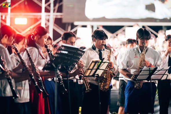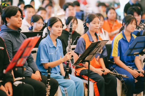 On January 24, 2026, Ms. Somjit Takhamseang, Director of Maerim Wittayakom School, assigned the Arts Department (Western Music) to lead students from the Special Program in Western Music at the lower secondary level (Grades 7–9), along with members of the school marching band club, to participate in the Music For All workshop. The activity aimed to disseminate and integrate musical knowledge for youth and the general public in the region. The workshop was honored by lecturers from the Department of Music, Faculty of Humanities, Kasetsart University, who served as guest speakers. The event was held at the Chiang Mai Provincial Administrative Organization Park.