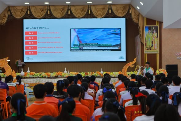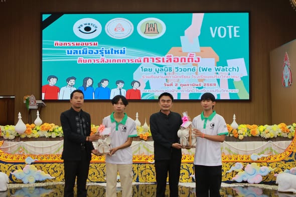 The training was conducted by speakers from the We Watch Foundation, who were honored to provide knowledge on this occasion. The objective of the training was to promote students’ knowledge and understanding of the roles and responsibilities of citizens in a democratic system, raise awareness of the importance of elections and honest and transparent political participation, and develop critical thinking skills as well as responsible election observation. This initiative aims to foster a new generation of high-quality citizens for society and the nation.