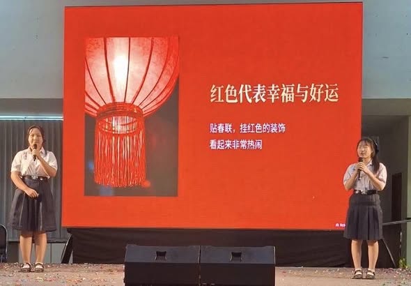 On February 13, 2026, Ms. Somjit Takamsaeng, Director of Maerim Wittayakom School, assigned the Foreign Languages Department (Chinese Program) to lead student representatives from the Chinese Language Arts Program (Mathayom 4/6 and 5/6) to participate in International Day 2026 and the Academic Skills Competition for the Academic Year 2026.The student representatives from the Chinese Language Arts Program were Miss Kelwalin Thanomworakul and Miss Pornchanok Korkeerti. They competed in an academic skills contest related to Chinese culture and important national days of China. The Mathayom 4/6 students won the Outstanding Award (First Prize) and received a cash prize of 4,000 baht.The event was held at Rajabhat Chiang Mai University International College.