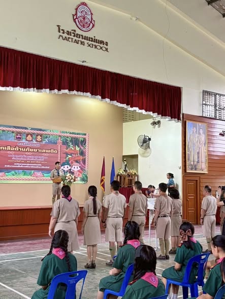 On February 24, 2026, Miss Somjit Takhamsaeng, Director of Maerim Wittayakom School, and Mr. Kritsana Jankhao, Deputy Director, together with teachers and students of Maerim Wittayakom School, participated in the Scout Camp Project Against Drugs 2026 of the Doi Mon Jam Cluster.The purpose of the camp was to raise awareness of the dangers of drug abuse and to collaboratively prevent and address drug-related problems in educational institutions. The activity was held at Maetaeng School, Chiang Mai Province.