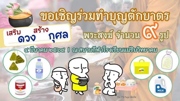 ขอเชิญชวนร่วมกิจกรรมทำบุญ ตักบาตร เพื่อความเป็นสิริมงคลแก่ตนเอง มาร่วมกันสืบสานวัฒนธรรมอันดีงาม และปลูกฝังคุณธรรมให้คงอยู่สืบไป
