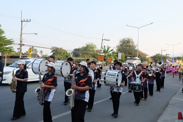 On 2 March 2026, Ms. Somjit Takhamsaeng, Director of Mae Rim Wittayakom School, assigned the Art Learning Area to lead the school marching band, consisting of students from Mathayom 1–6 (Grades 7–12), to participate in the musical procession for the sacred holy water offering ceremony for bathing the Phra That relic.This activity was part of the Cultural Preservation and Continuation Project of the Phra That Bathing Tradition, Rice Alms Offering, and Makha Bucha Day 2026. The event aimed to promote and preserve the valuable cultural and religious traditions of Buddhism.The ceremony was held at Wat Phra That Chom Taeng, Mae Rim District, Chiang Mai Province, Thailand.