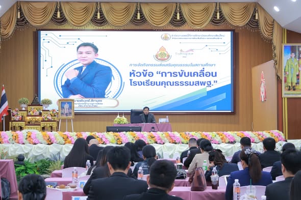 On March 16, 2026, Ms. Somjit Takhamsaeng, Director of Mae Rim Wittayakhom School, together with the school administrators, teachers, and educational personnel, participated in a workshop on driving moral promotion activities in educational institutions. The workshop aimed to exchange knowledge and discuss guidelines for implementing and promoting moral development activities in schools effectively and concretely.The event was honored by the presence of Mr. Therdkiat Yamsopha, Director of the Chiang Mai Secondary Educational Service Area Office, who presided over the opening ceremony of the workshop.