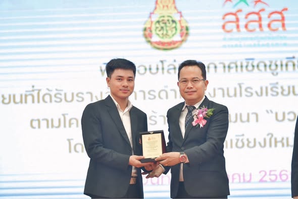 On March 27, 2026, Miss Somjit Takhamsaeng, Director of Maerim Wittayakhom School, assigned the Student Character Development and Moral Promotion Unit to represent the school in receiving a commemorative plaque for the “Model School Award for Being Free from Cigarettes, E-cigarettes, Cannabis, and Alcoholic Beverages for the Year 2025,” at the Dararasmi Academic Service Center, Yupparaj Wittayalai School.